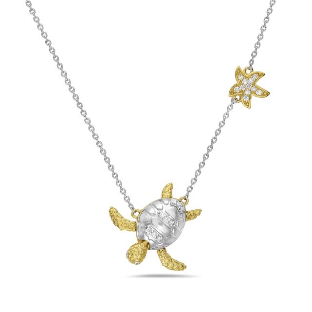 Two-Tone Turtle Necklace with Diamonds