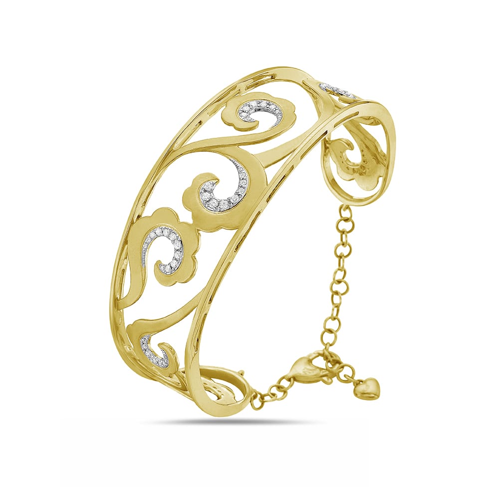 14K 21mm Wide Wave Bangle with 62 Diamonds (0.45ct) and Safety Chain