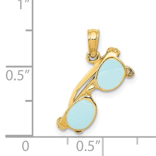 Shade in Style: 14K 3D Aqua Enamel Sunglasses Pendant