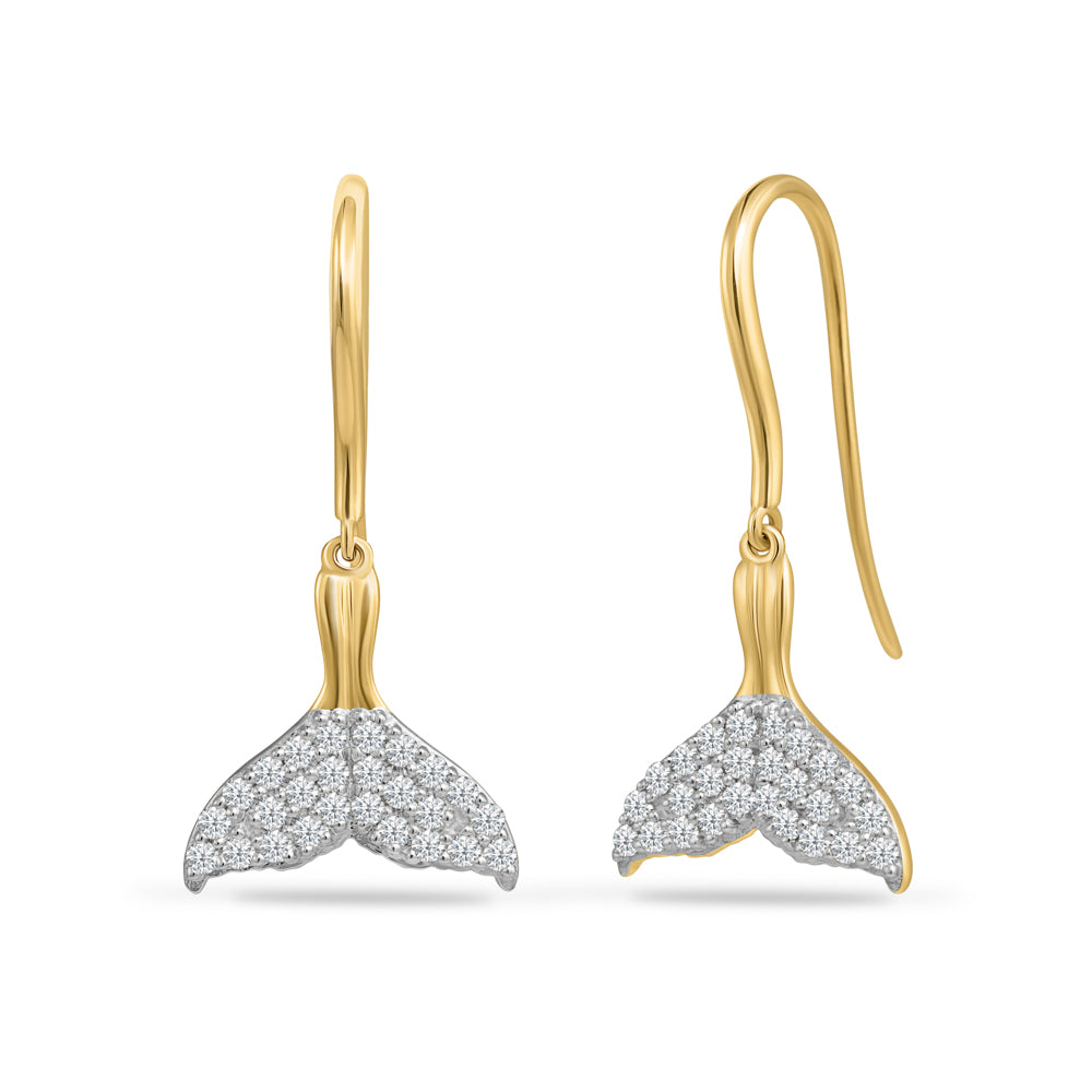 Majestic Oceanic Elegance: 14K Diamond Whale Tail Earrings