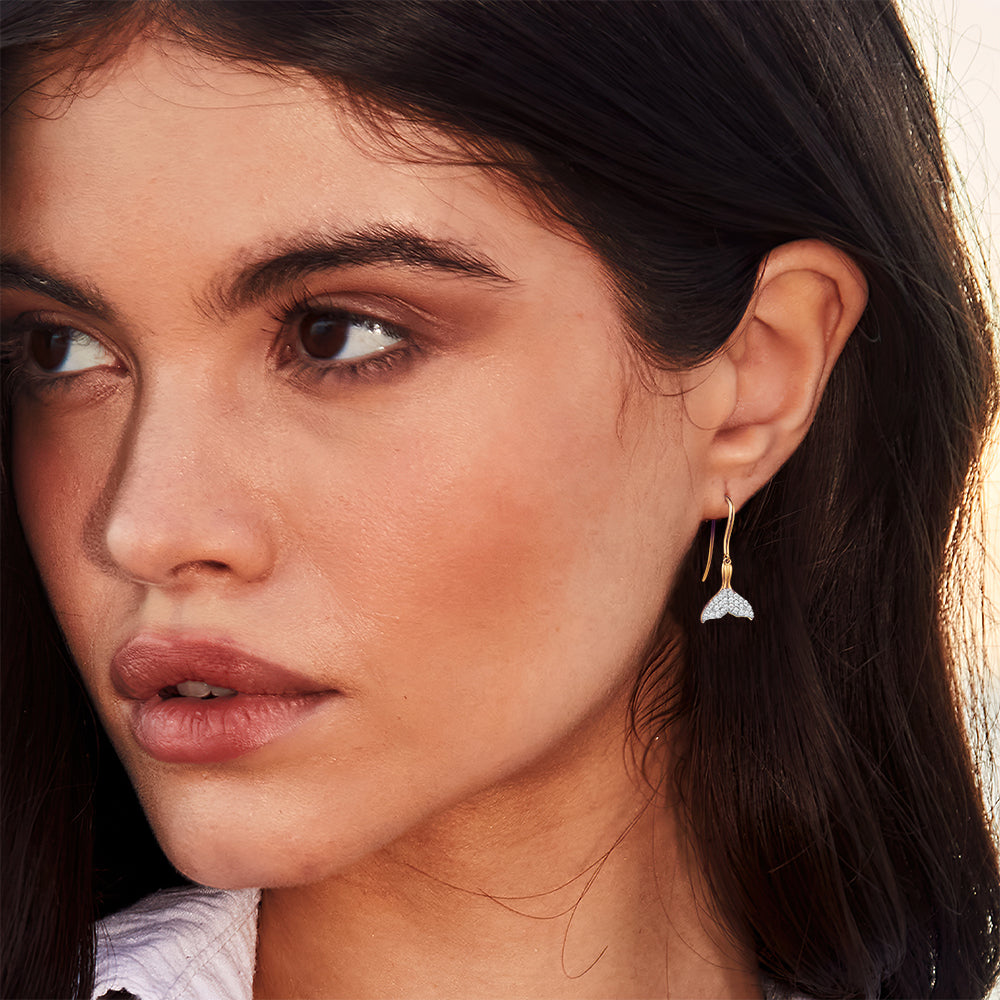 Dive into the depths of luxury with these breathtaking 14K gold whale tail earrings, featuring: