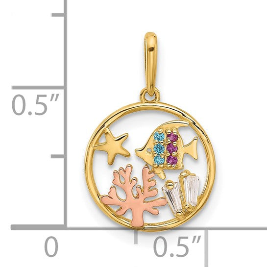 Dive into the beauty of the ocean with this stunning 14K with Rose Rhodium Polished Multicolor CZ Sea Life Pendant. Featuring a vibrant, multicolor CZ design, this pendant is a celebration of the sea's wonders.