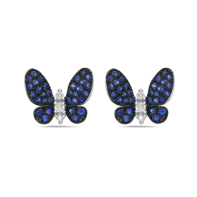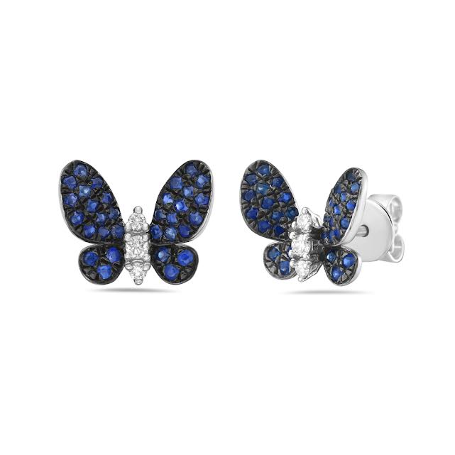 Add a touch of whimsy and elegance to your collection with these stunning 14K White Gold Butterfly Earrings. Adorned with 64 vibrant blue sapphires and 6 sparkling diamonds, these earrings are designed to captivate and elevate any look.