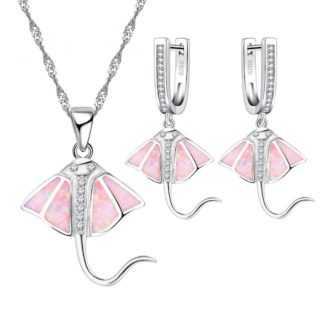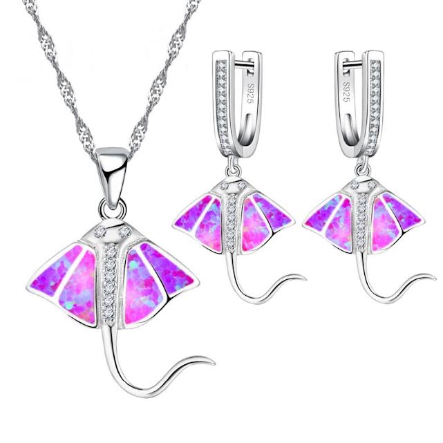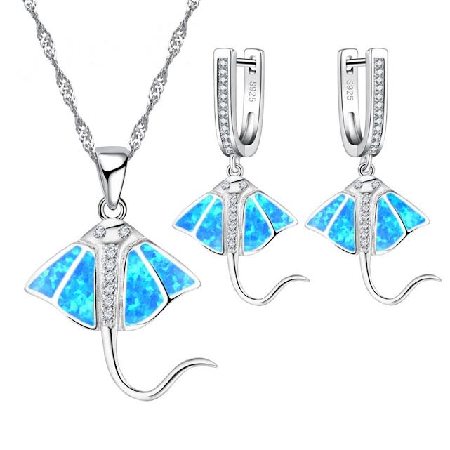 Mystical Blue Fire Opal Stingray Pendant & Earrings Set