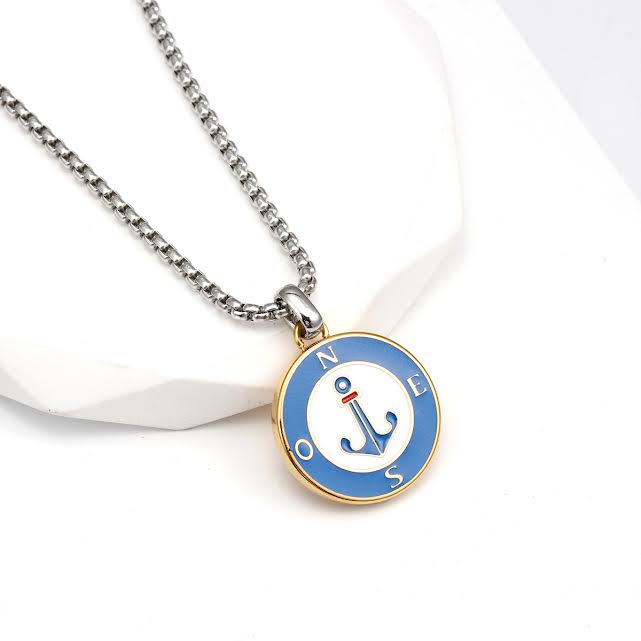 Step into the spirit of exploration with this elegant necklace, where the anchor meets the compass in a beautifully enameled design. This piece blends the steadfastness of the anchor with the guidance of a compass, creating a symbol of both grounding and direction.