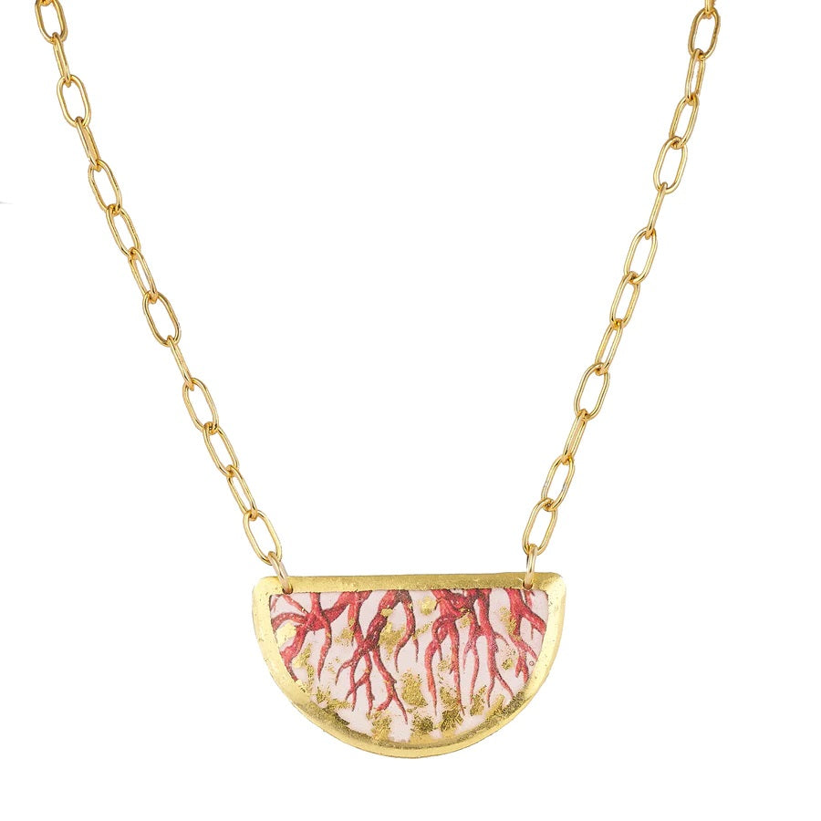 Embody the warmth and beauty of the ocean with this exquisite 22K gold leaf coral-inspired necklace.