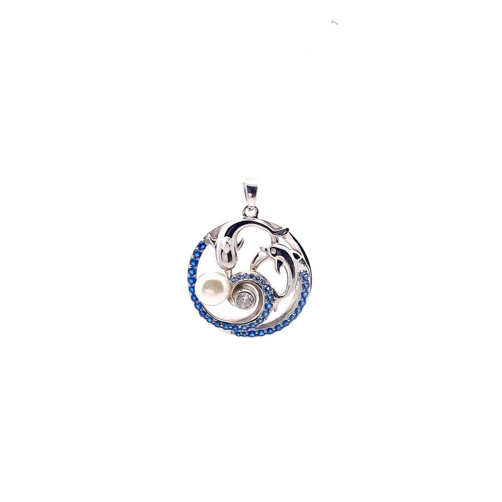 Celebrate the beauty of the ocean with this stunning Gold Plated Dolphins and Wave Pendant, featuring a graceful wave design accented by playful dolphins and a lustrous pearl.