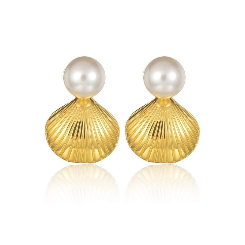 Gold-Plated Geometric Faux Pearl Shell Earrings
