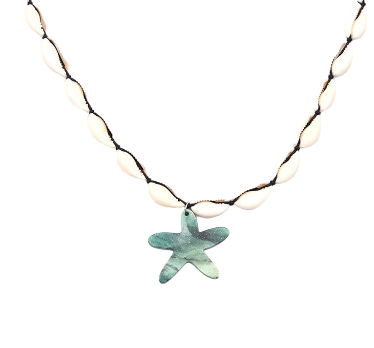 Embrace the essence of the ocean with this stunning shells beaded necklace, adorned with a majestic starfish.
