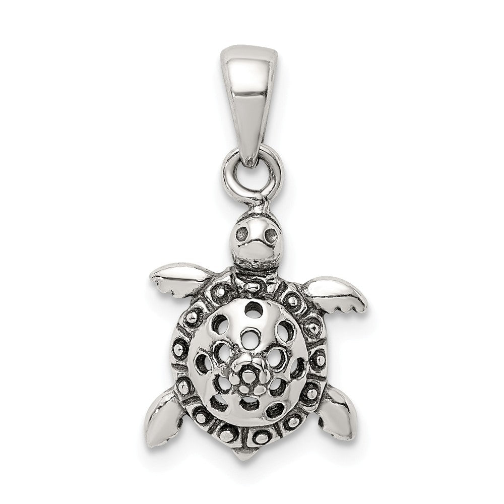 Take a vacation from ordinary with our antiqued Sterling Silver Geometric Dot Sea Turtle Pendant. This unique and eye-catching design pairs effortlessly with any look, from day to night, bringing the serenity of the sea to your wardrobe.