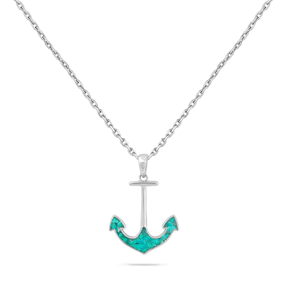 Sterling Silver Glimmering Ocean Dreams Anchor Pendant Necklace