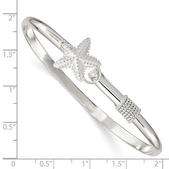 Shine bright like a star with this stunning Sterling Silver Polished and Textured Starfish Bangle!