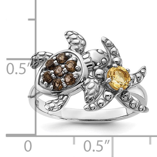 Turtle & Starfish Ocean Ring in Smoky Quartz and Citrine