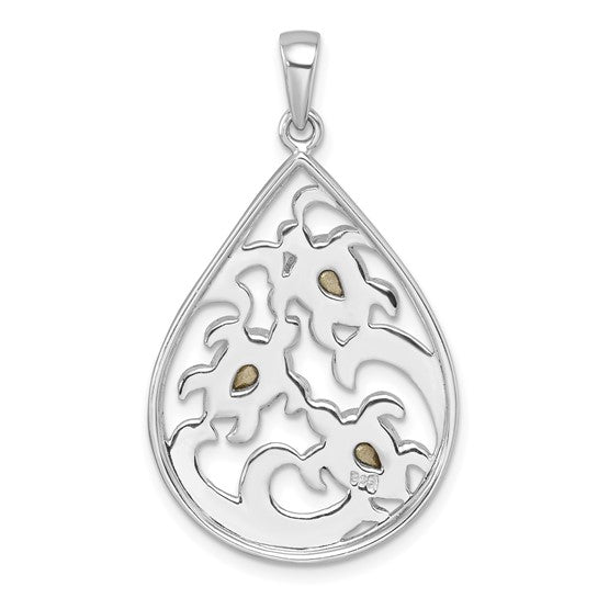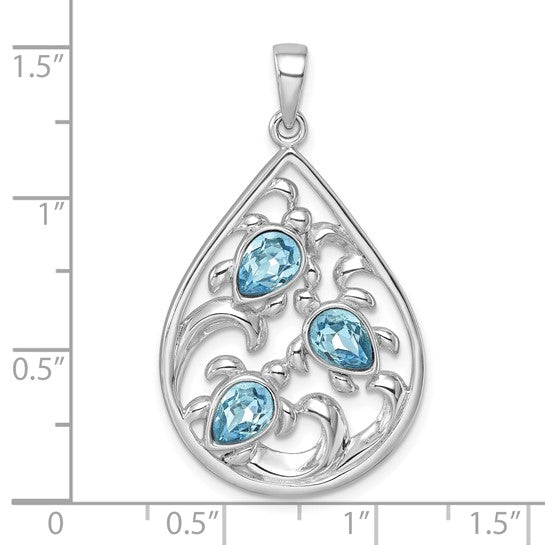 Enhance your jewelry collection with our Sterling Silver Rhodium-Plated Polished Triple Crystal Turtle Ocean Wave Pendant. This elegant piece captures the essence of marine beauty, making it a perfect accessory for ocean lovers.